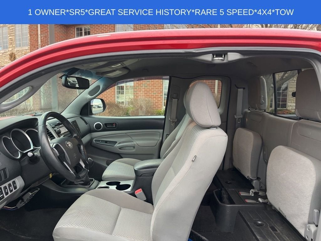 4X4 ONE OWNER* LOCAL TRADE* GREAT SERVICE HISTORY* BACK UP CAMERA* CARFAX One-Owner, BEDLINER, LOW MILES, TOW HITCH. White's Ford of Orrville is very proud to offer this 2012 Toyota Tacoma in Barcelona Red Metallic with Sand Beige w/Fabric Cloth Seat Trim or Fabric Seat Trim (FQ). This Tacoma is very well equipped with Backup Camera Fabric Seat Trim w/SR5 Package, SR5 Extra Value Package (Chrome Grille Surround & Rear Bumper, Color-Keyed Front Bumper & Overfenders, Compass & Outside Temperature Gauge, Cruise Control, Driver Lumbar Support, Dual Sunvisors w/Mirrors & Extenders, HomeLink, Metallic Tone Instrument Panel Trim, Power Outside Mirrors, Privacy Glass, Remote Keyless Entry System, Sliding Rear Window, SR5 Badging, Tailgate-Handle Integrated Backup Camera, and Variable Speed Wipers), 6 Speakers, Air Conditioning, AM/FM radio, AM/FM/CD w/6 Speakers, Brake assist, Power steering, and Power windows.Odometer is 57427 miles below market average!Awards:* 2012 KBB.com Best Resale Value Awards * 2012 KBB.com 10 Best Used Trucks Under $20,000See what a difference a short drive can make. Call us at 330-682-2040.Reviews:* Engines offer a good balance of power and fuel efficiency; wide variety of body styles and trims; strong safety scores; impressive build quality; well-appointed interior. Source: Edmunds* If you're looking for a proven pickup that is as capable as it is stylish, the 2012 Toyota Tacoma pickup deserves your full attention. Nearly as capable as a full-size pickup, but without the extra bulk or poor fuel economy, the Tacoma offers a wide selection ranging from everyday work truck to rugged off-road adventurer. Source: KBB.com