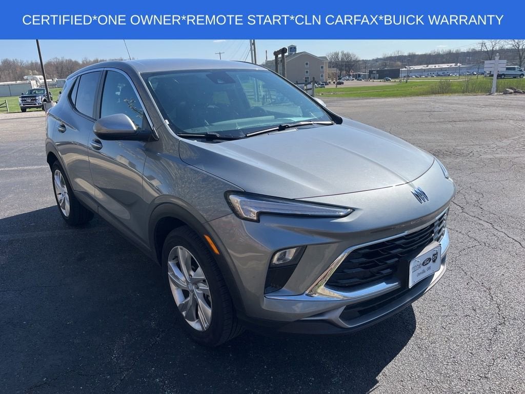 CLEAN CARFAX One-Owner. Certified. BUICK FACTORY WARRANTY*BUICK DRIVER CONFIDENCE *INTELLIBEAM-AUTO HIGH BEAM *FOLLOWING DISTANCE INDICATOR *FORWARD COLLISION ALERT *LANE KEEP ASSIST WITH LANE DEPARTURE WARNING *AUTOMATIC EMERGENCY BRAKING *FRONT PEDESTRIAN BRAKING ⢠LANE CHANGE ALERT WITH SIDE BLIND ZONE ALERT ⢠REAR CROSS TRAFFIC ALERT ⢠HD REAR VISION CAMERA ⢠TEEN DRIVERWhite's Ford of Orrville is pleased to offer this 2025 Buick Encore GX Preferred in Moonstone Gray Metallic with Ebony Seats With Ebony Interior Accents Premium Synthetic. This Encore GX is very well equipped with Preferred Equipment Group 1SB, 2 USB Ports (1 Type-A, 1 Type-C), 4-Way Manual Passenger Seat Adjuster, 6-Way Manual Driver Seat Adjuster, Air Conditioning, Alloy wheels, AM/FM radio: SiriusXM, Brake assist, Enhanced Performance 6-Speaker System, Panic alarm, Power steering, Power windows, Radio data system, Rear window wiper, Remote keyless entry, Security system, Speed control, and Steering wheel mounted audio controls. 29/31 City/Highway MPG Certification Program Details: Ford Blue Advantage: Blue Certified * 139 Point Inspection * Transferable Warranty * Vehicle History * Warranty Deductible: $100 * Roadside Assistance * Limited Warranty: 3 Month/4,000 Mile (whichever comes first) after new car warranty expires or from certified purchase date * and 11,000 FordPass Rewards Points to use toward first maintenance visit See what a difference a short drive can make. Call us at 330-682-2040.