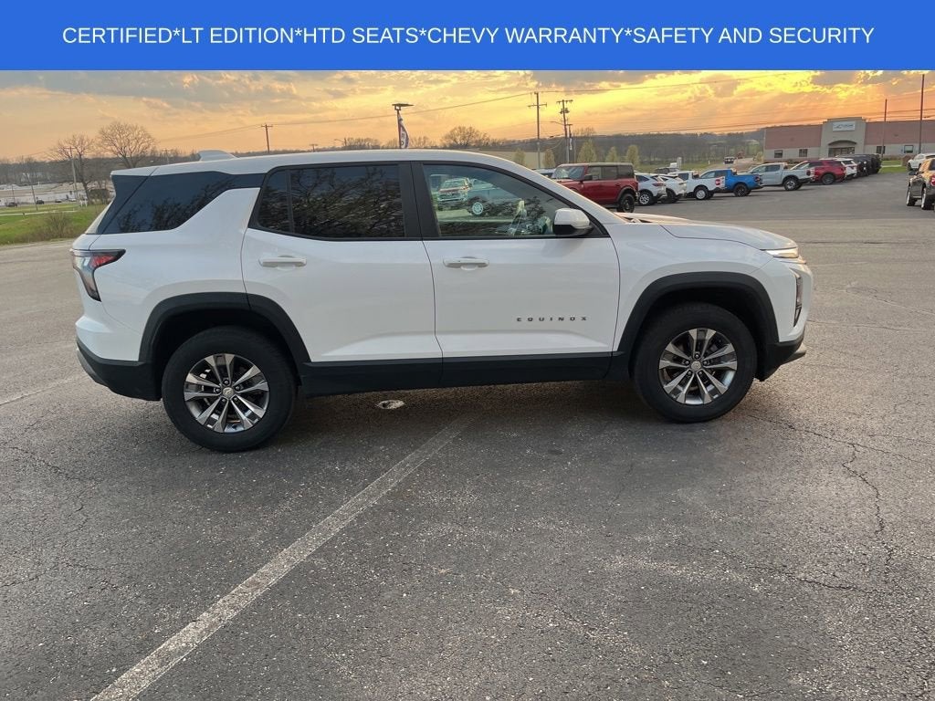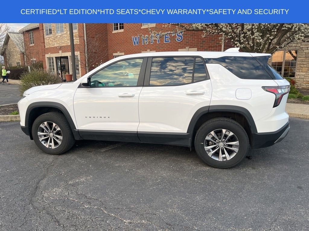 ONE OWNER* CLEAN CARFAX*Certified*FACTORY WARRANTY* White's Ford of Orrville is excited to offer this 2025 Chevrolet Equinox LT in Summit White with Black Cloth. This Equinox is very well equipped with Backup Camera Preferred Equipment Group 1LT, 6 Speakers, Air Conditioning, AM/FM radio: SiriusXM, Panic alarm, Power steering, Power windows, Premium audio system: Chevrolet Infotainment 3, Radio data system, Radio: 11.3 Diagonal Advanced Color LCD Display, Rear window defroster, Rear window wiper, Remote keyless entry, Security system, SiriusXM, Speed control, Steering wheel mounted audio controls, and Variably intermittent wipers. 26/28 City/Highway MPG Certification Program Details: Ford Blue Advantage: Blue Certified * 139 Point Inspection * Transferable Warranty * Vehicle History * Warranty Deductible: $100 * Roadside Assistance * Limited Warranty: 3 Month/4,000 Mile (whichever comes first) after new car warranty expires or from certified purchase date * and 11,000 FordPass Rewards Points to use toward first maintenance visit See what a difference a short drive can make. Call us at 330-682-2040.