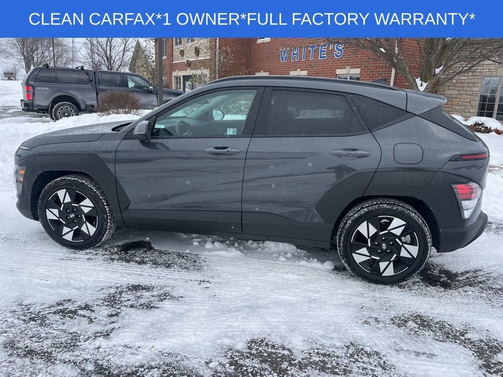 FACTORY WARRANTY* CLEAN CARFAX* 1 OWNER*Recent Arrival! CARFAX One-Owner. APPLE CARPLAY, ANDROID AUTO, White's Ford of Orrville is pumped up to offer this 2025 Hyundai Kona SEL in Ecotronic Gray Pearl with Black Cloth. This Kona is very well equipped with Option Group 01, 4-Wheel Disc Brakes, 6 Speakers, Air Conditioning, AM/FM radio: SiriusXM, Auto High-beam Headlights, Brake assist, Exterior Parking Camera Rear, Power driver seat, Power steering, Power windows, Radio: AM/FM/HD Radio/SiriusXM Audio System, Rear window defroster, Rear window wiper, Remote keyless entry, Speed-sensing steering, Steering wheel mounted audio controls, and Variably intermittent wipers.28/35 City/Highway MPGSee what a difference a short drive can make. Call us at 330-682-2040.